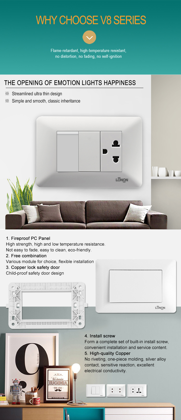 - Big wire connection hole,available for 3*4m2,firmly wiring